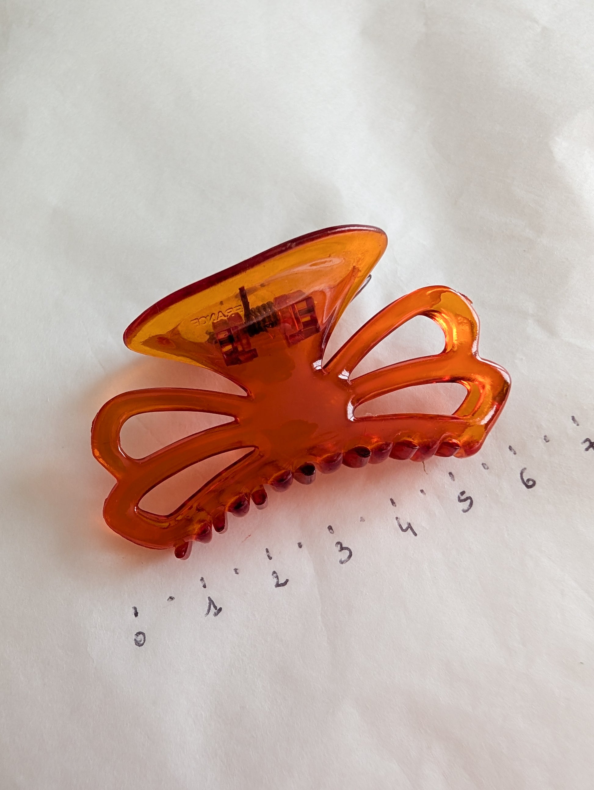 La pièce provient du stock d'un atelier de fabrication de barrettes et bijoux de cheveux situé dans le Jura. Le Jura est le berceau de l'industrie du plastique français. On y fabrique des pièces de très grande qualité.