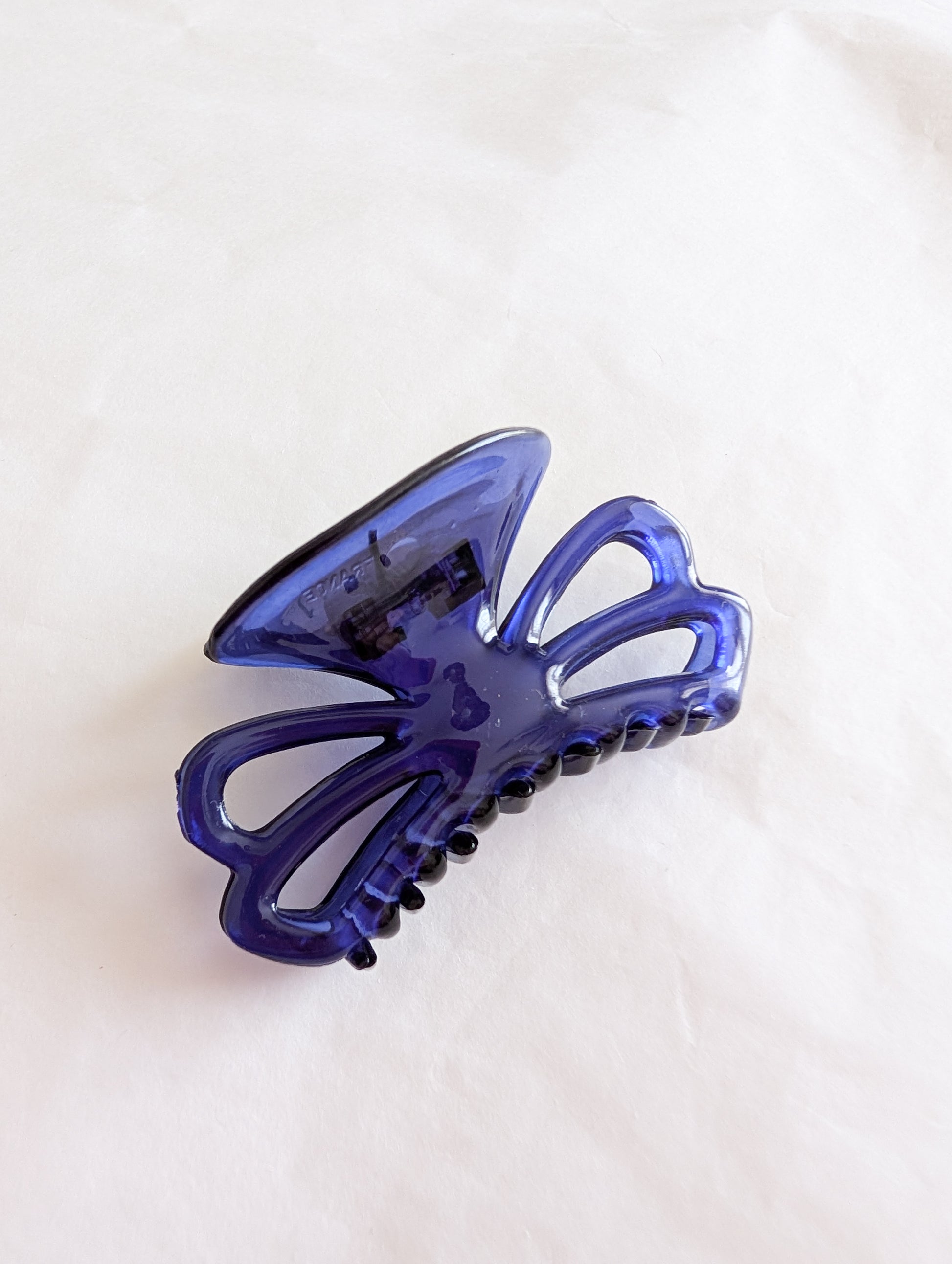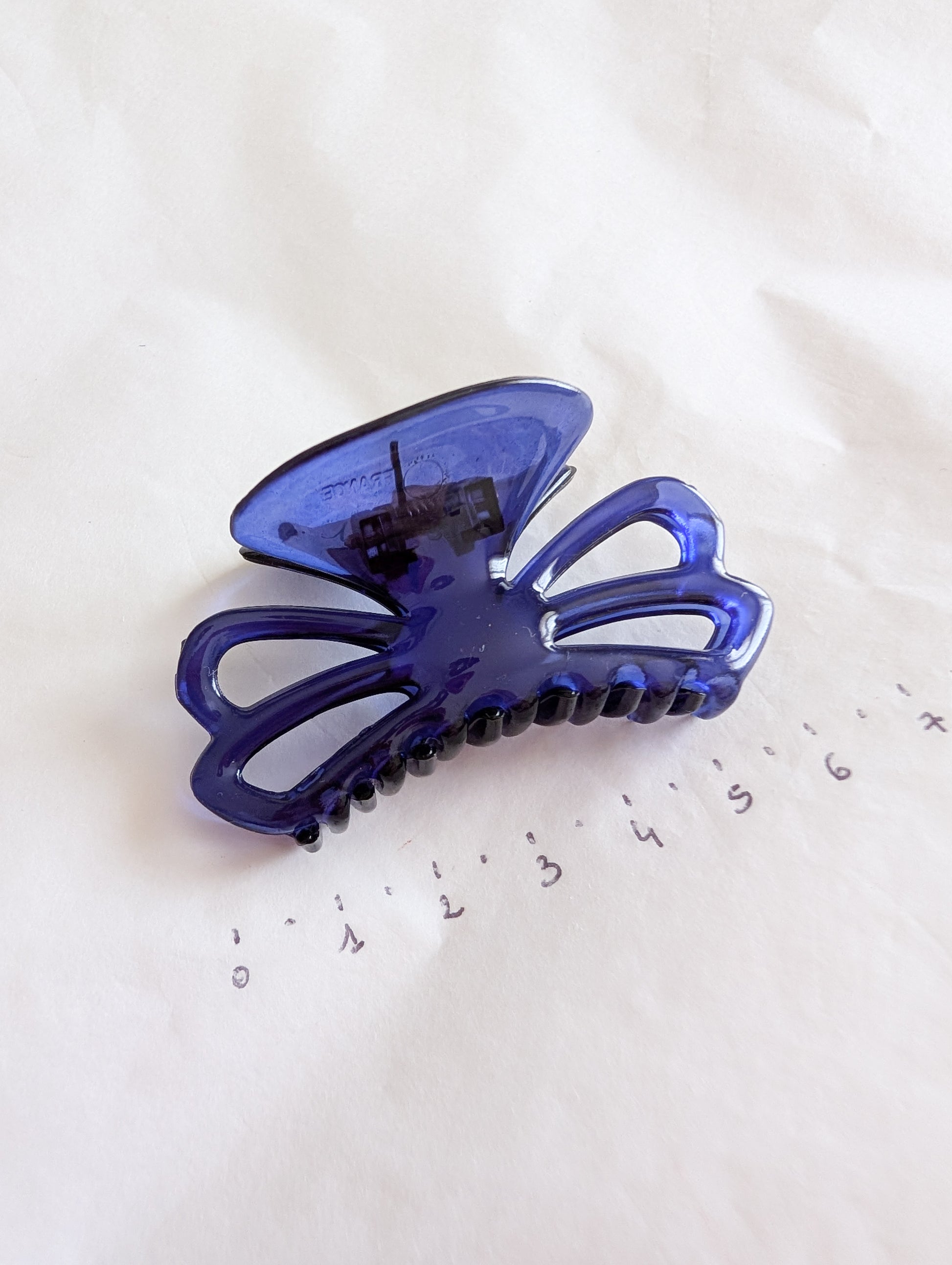 La pièce provient du stock d'un atelier de fabrication de barrettes et bijoux de cheveux situé dans le Jura. Le Jura est le berceau de l'industrie du plastique français. On y fabrique des pièces de très grande qualité.