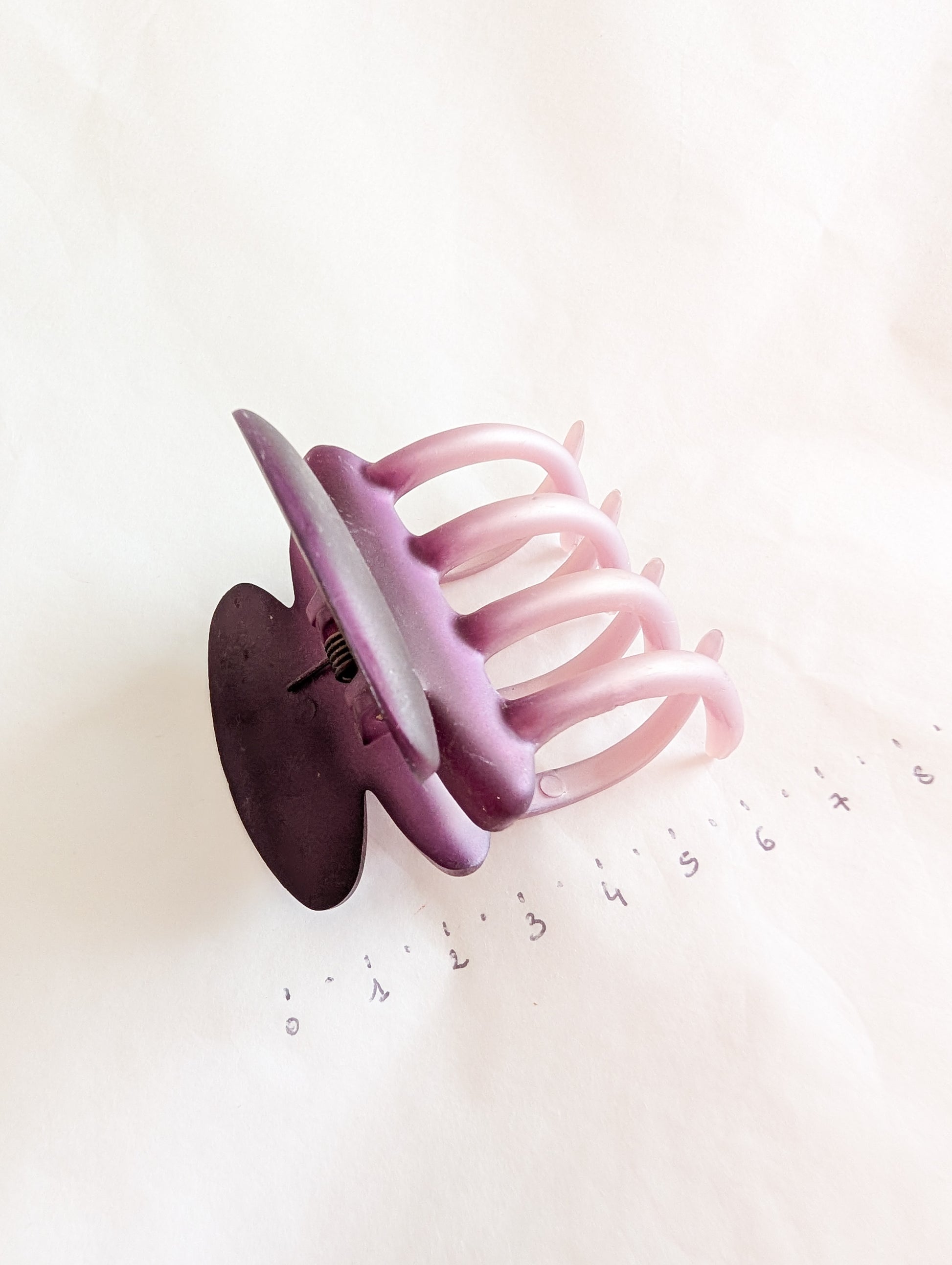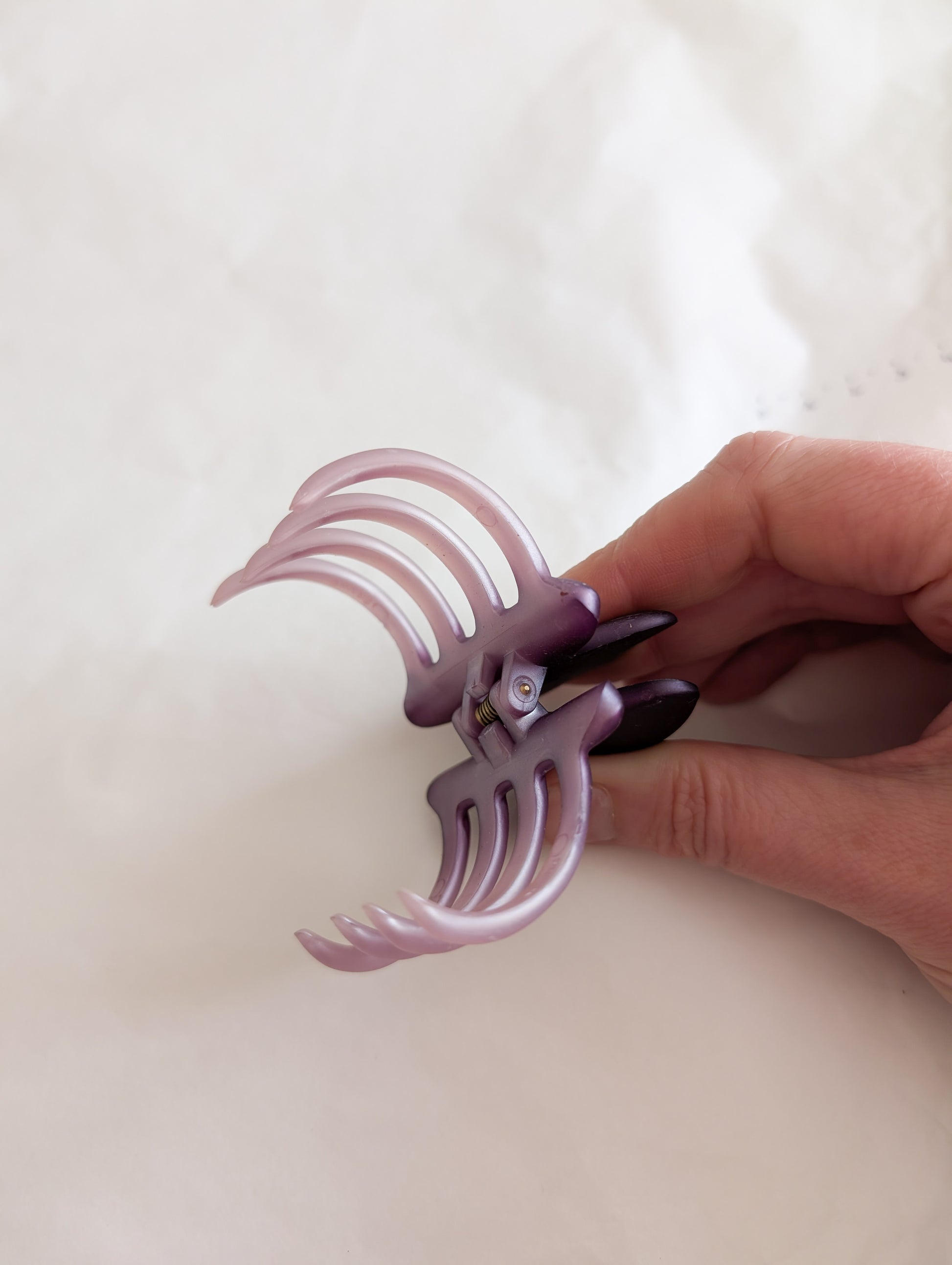 La pièce provient du stock d'un atelier de fabrication de barrettes et bijoux de cheveux situé dans le Jura. Le Jura est le berceau de l'industrie du plastique français. On y fabrique des pièces de très grande qualité.