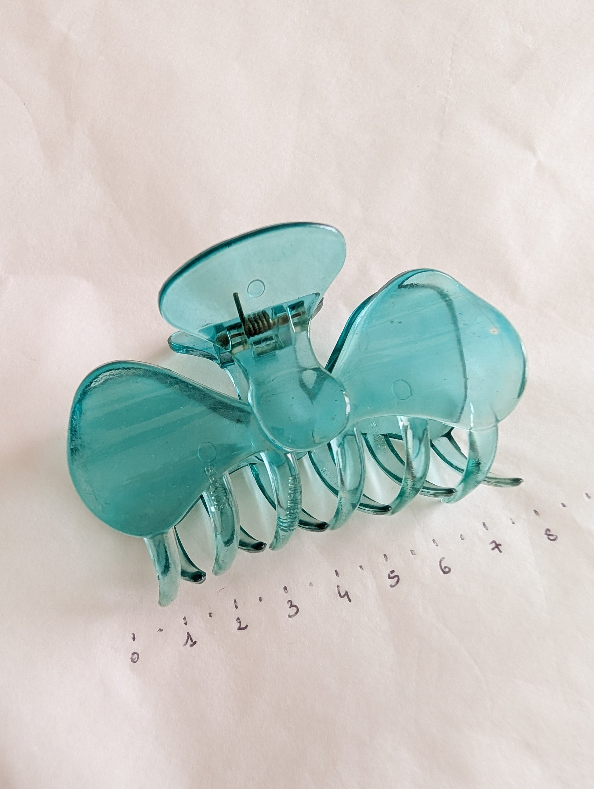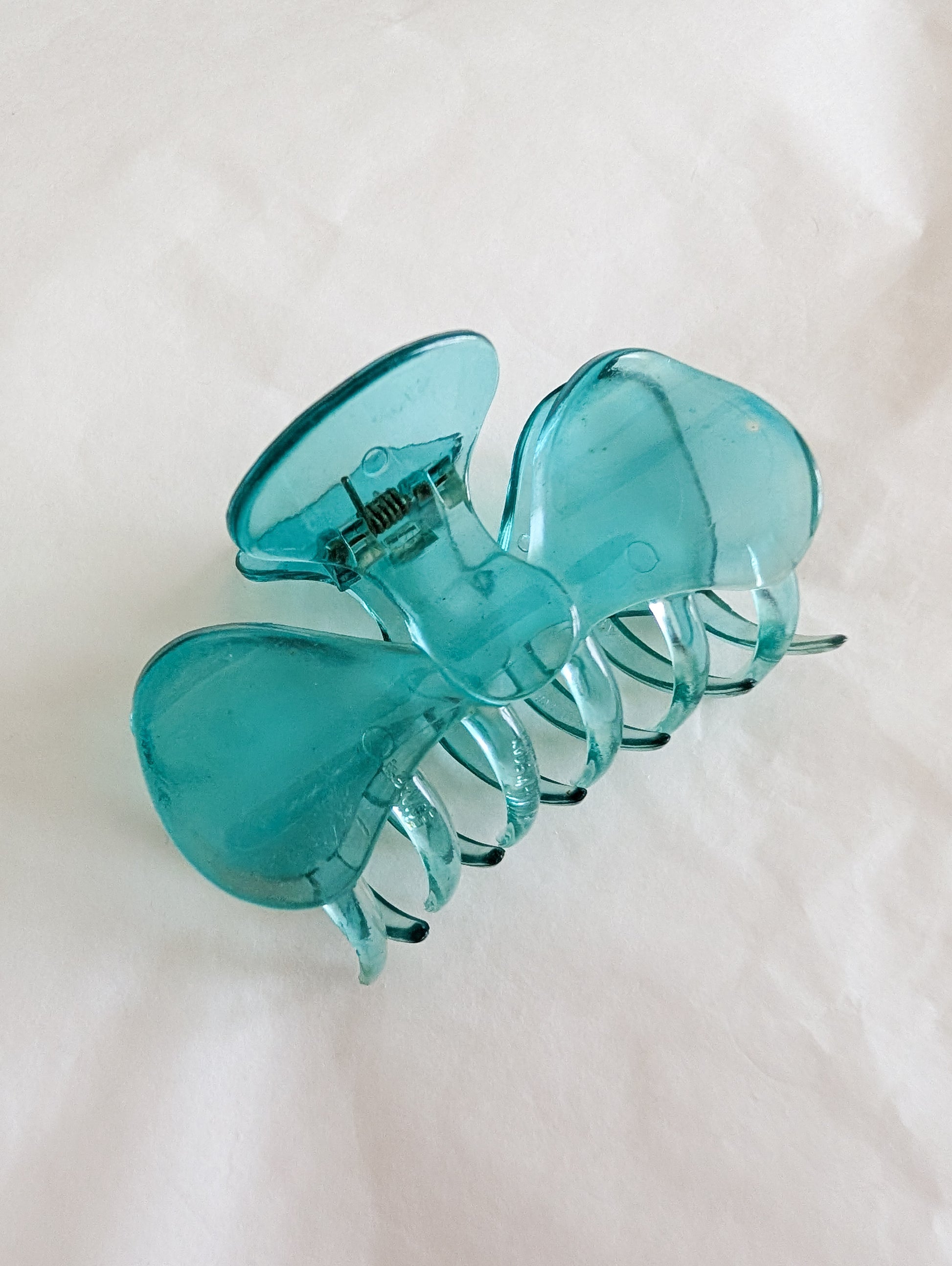 La pièce provient du stock d'un atelier de fabrication de barrettes et bijoux de cheveux situé dans le Jura. Le Jura est le berceau de l'industrie du plastique français. On y fabrique des pièces de très grande qualité.