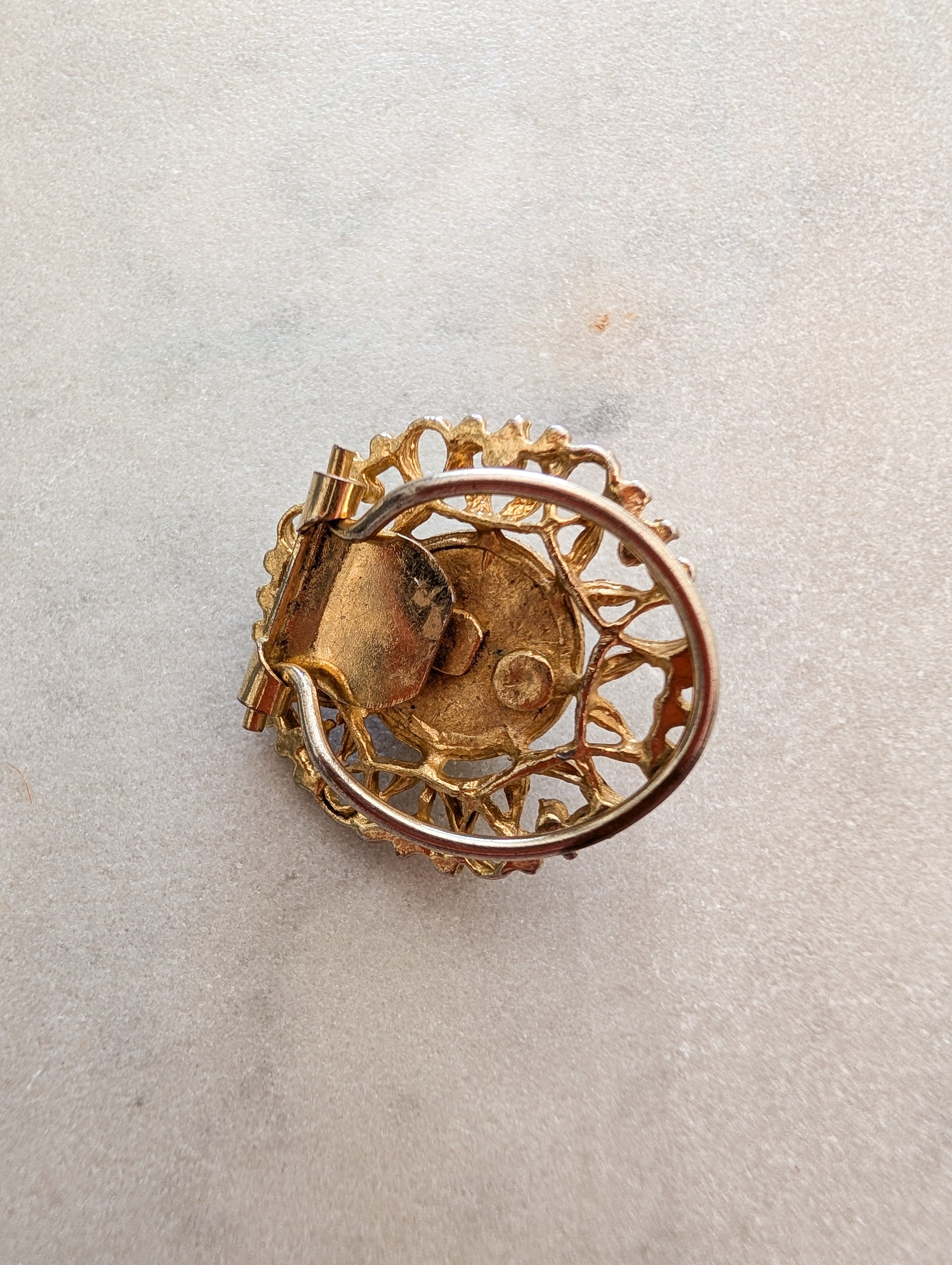 Très jolie pince à foulard. Elle date des années 80. J'aime beaucoup son esprit couture qui rappelle la Maison Chanel .