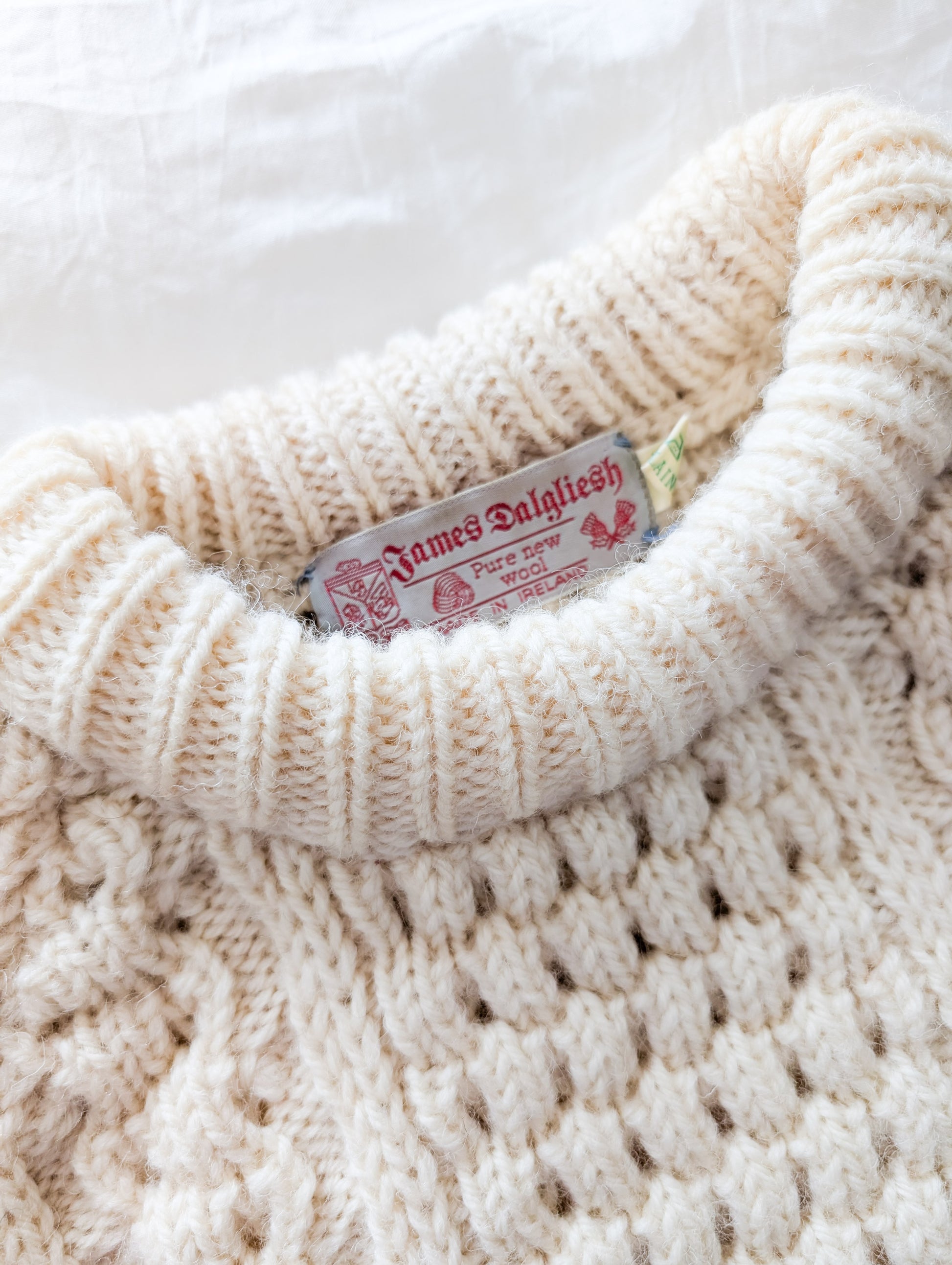 Coup de cœur pour ce magnifique pull en laine datant des années 80. Il a été fabriqué en Irlande.