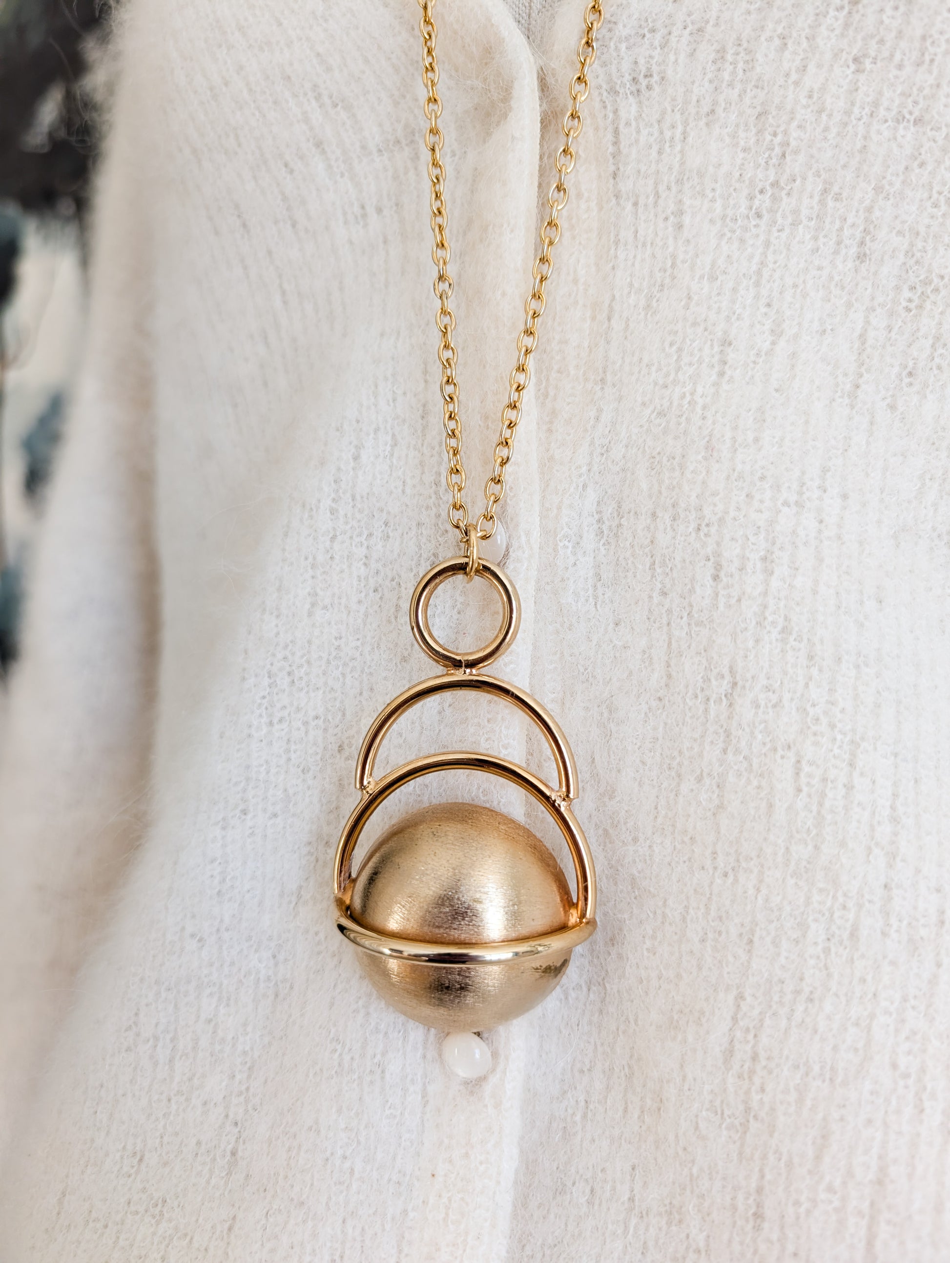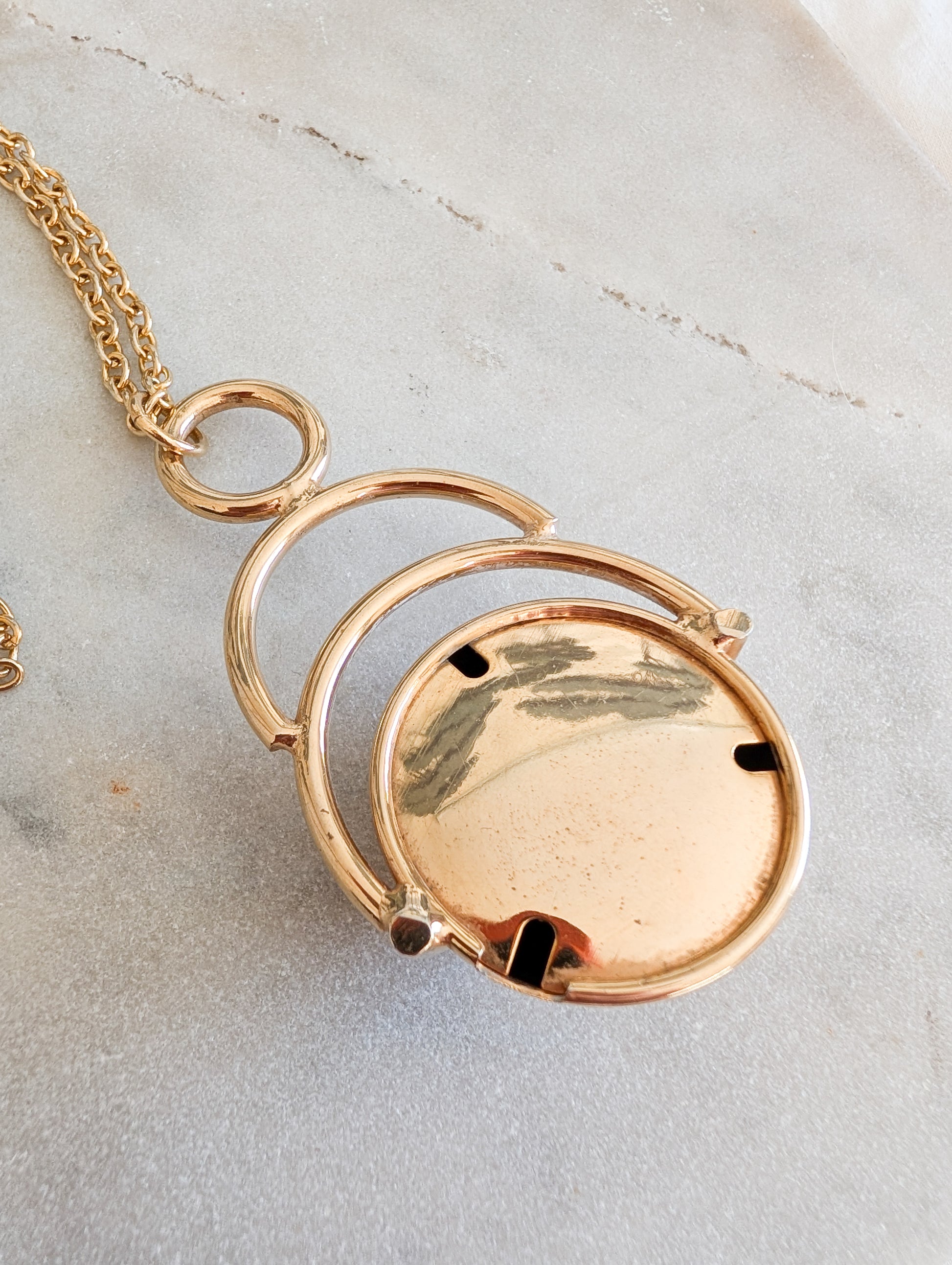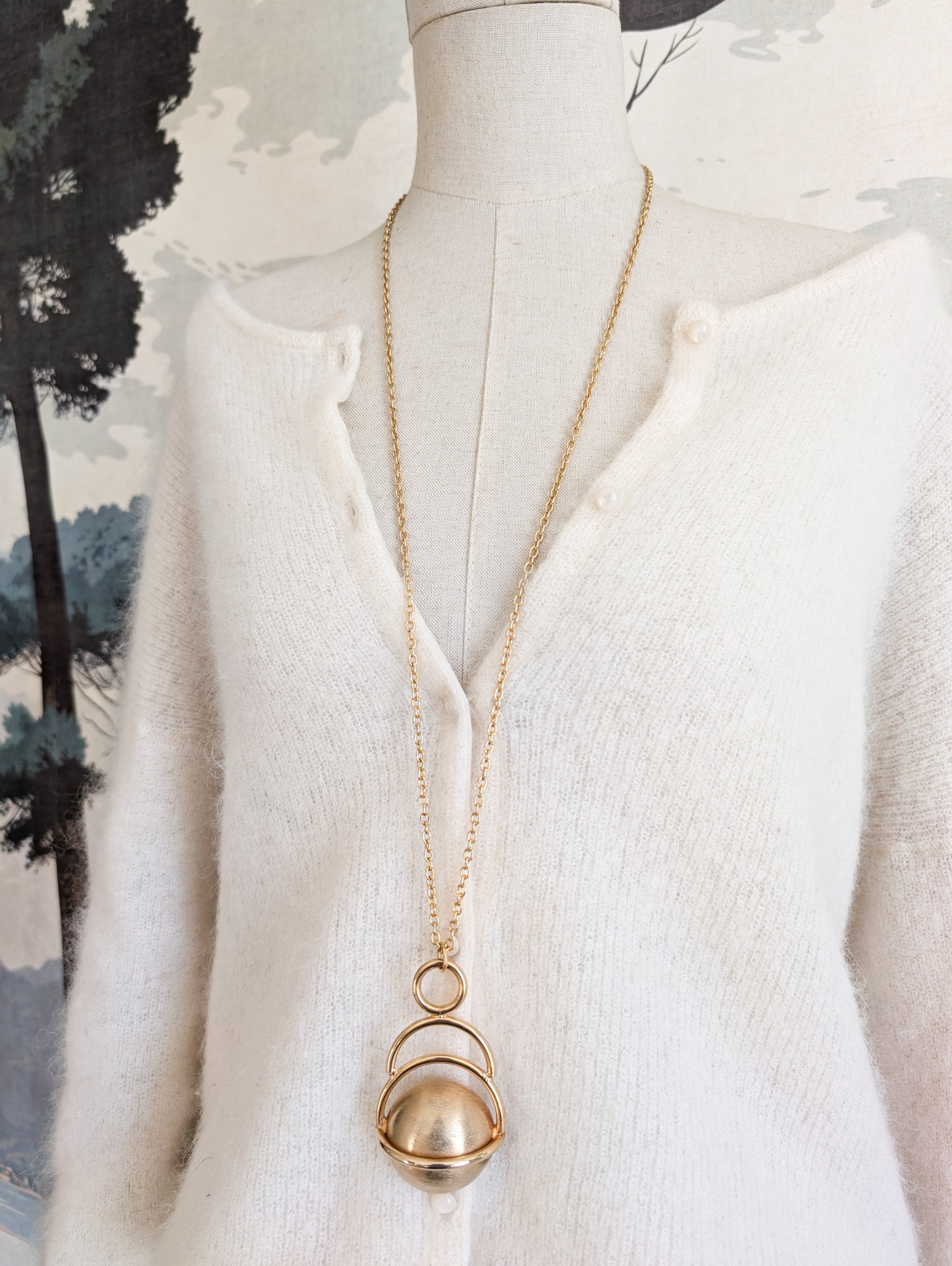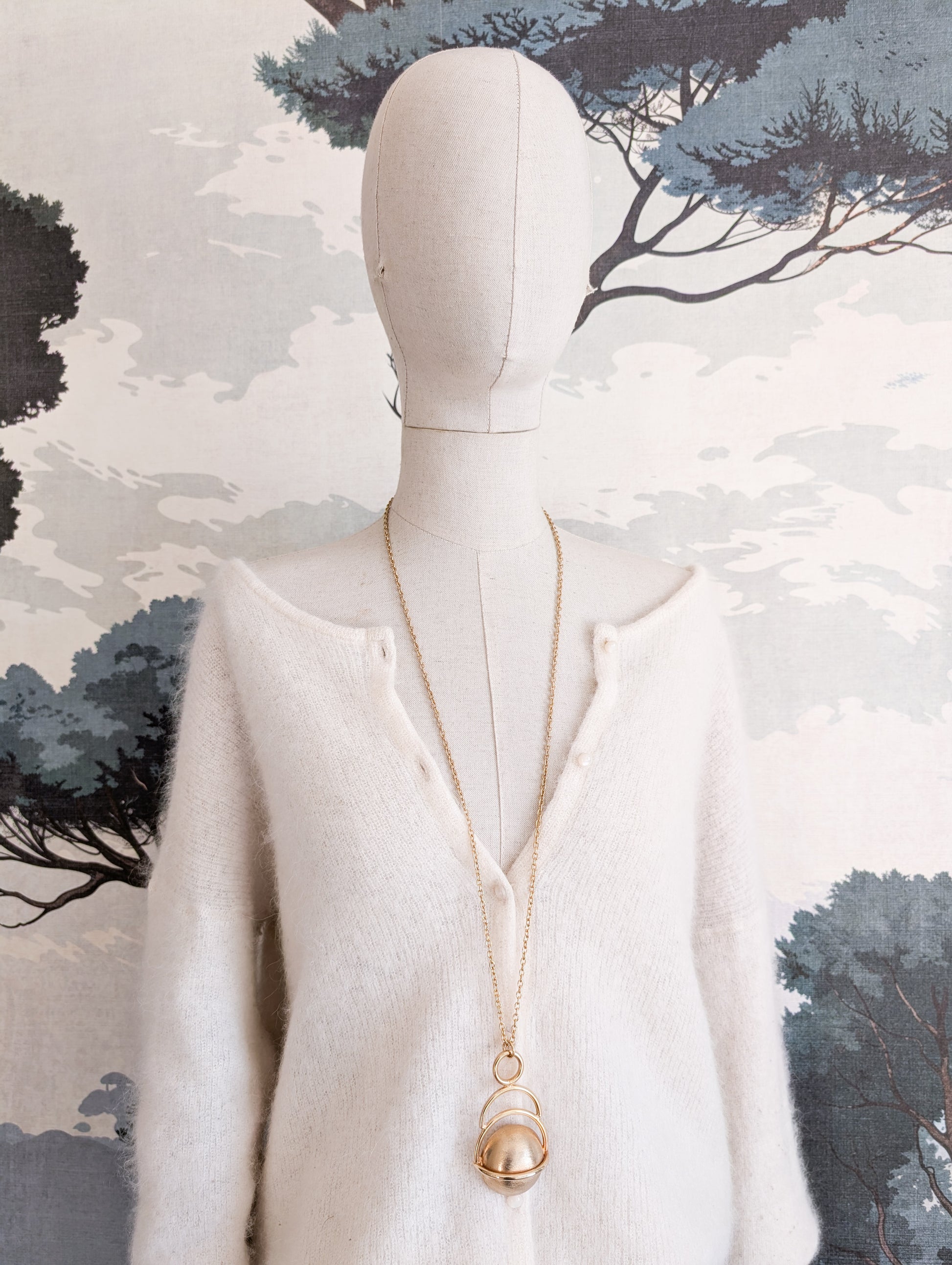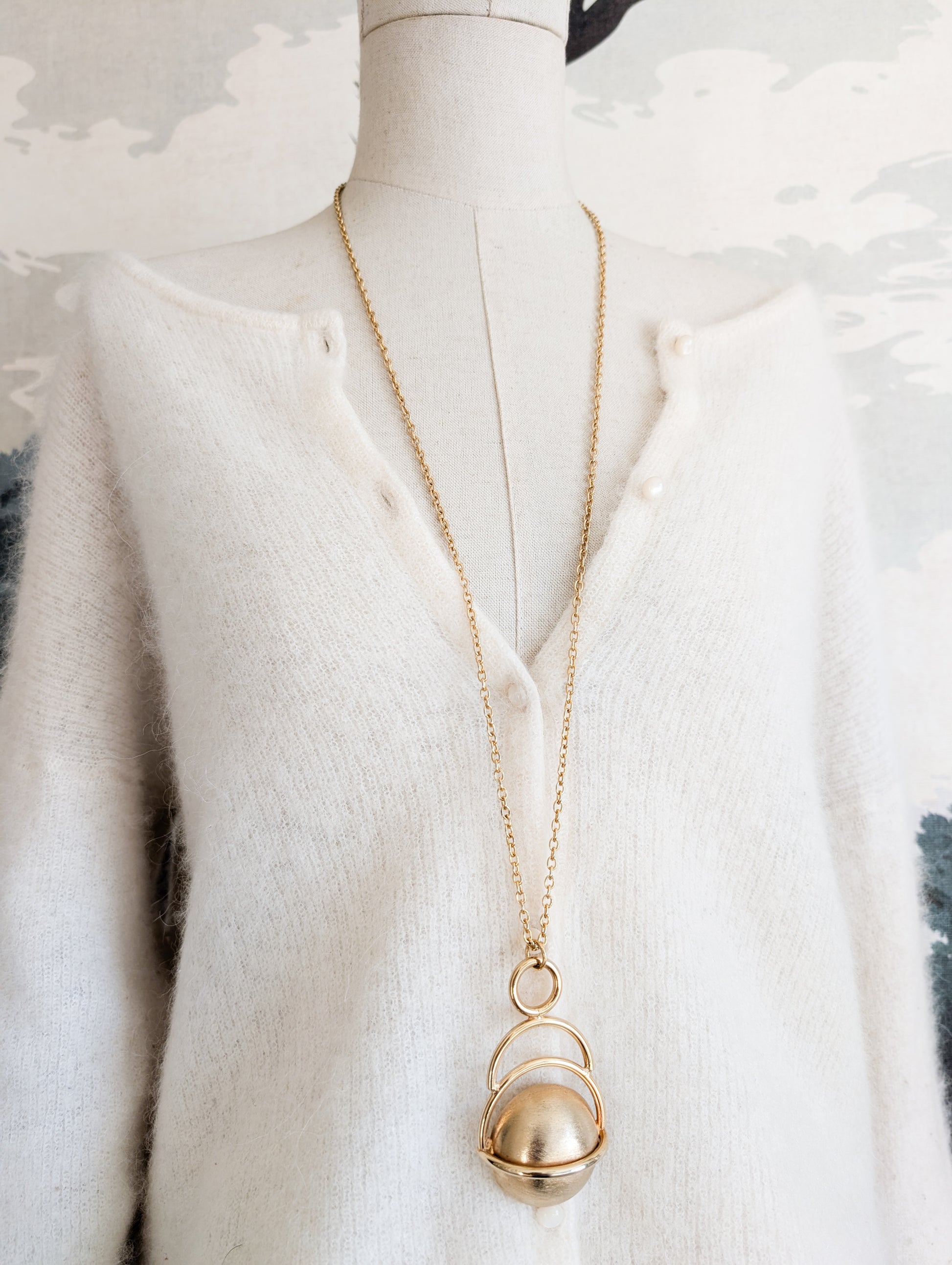 Le collier présente une très longue chaînette avec un grand pendentif. Tout à fait dans le goût des bijoux des années 70!