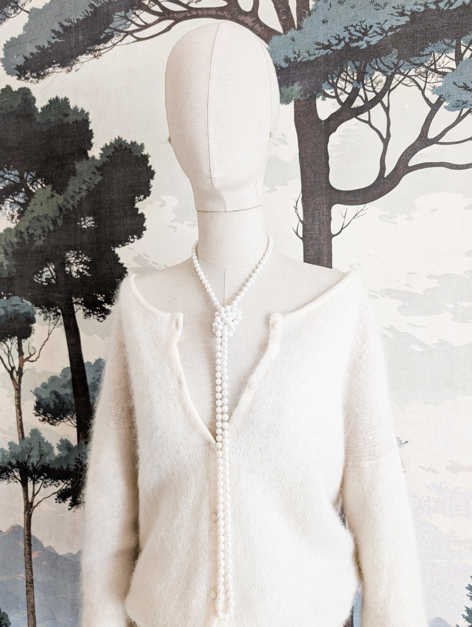 Un petit nœud entre chaque perle, un montage long et minutieux qui témoigne de la qualité du bijou.