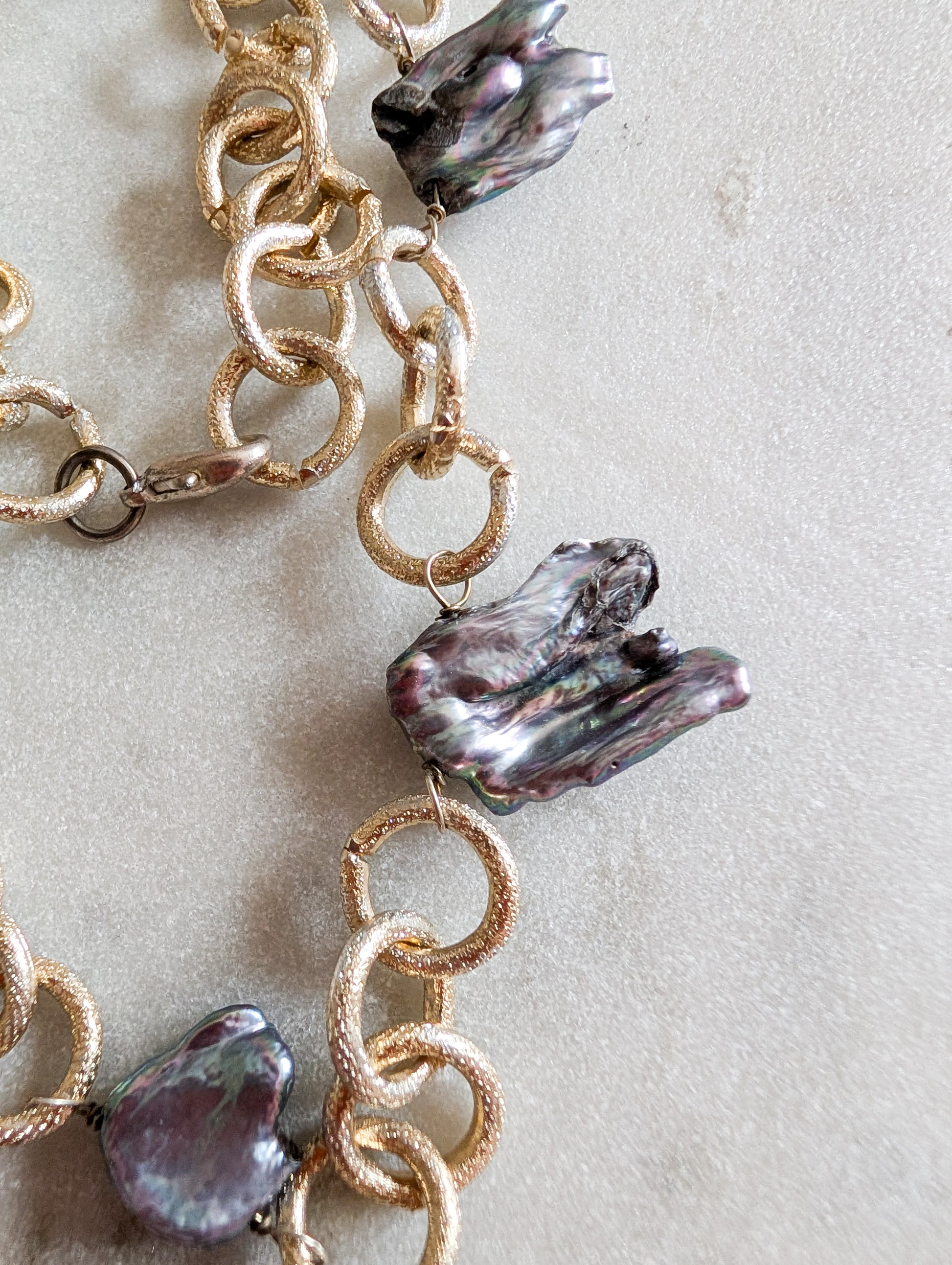Le collier est en très bon état. La dorure or et un peu argent sur certains maillons. Je pense que c'est un détail d'origine, certainement lié à une dorure artisanale.