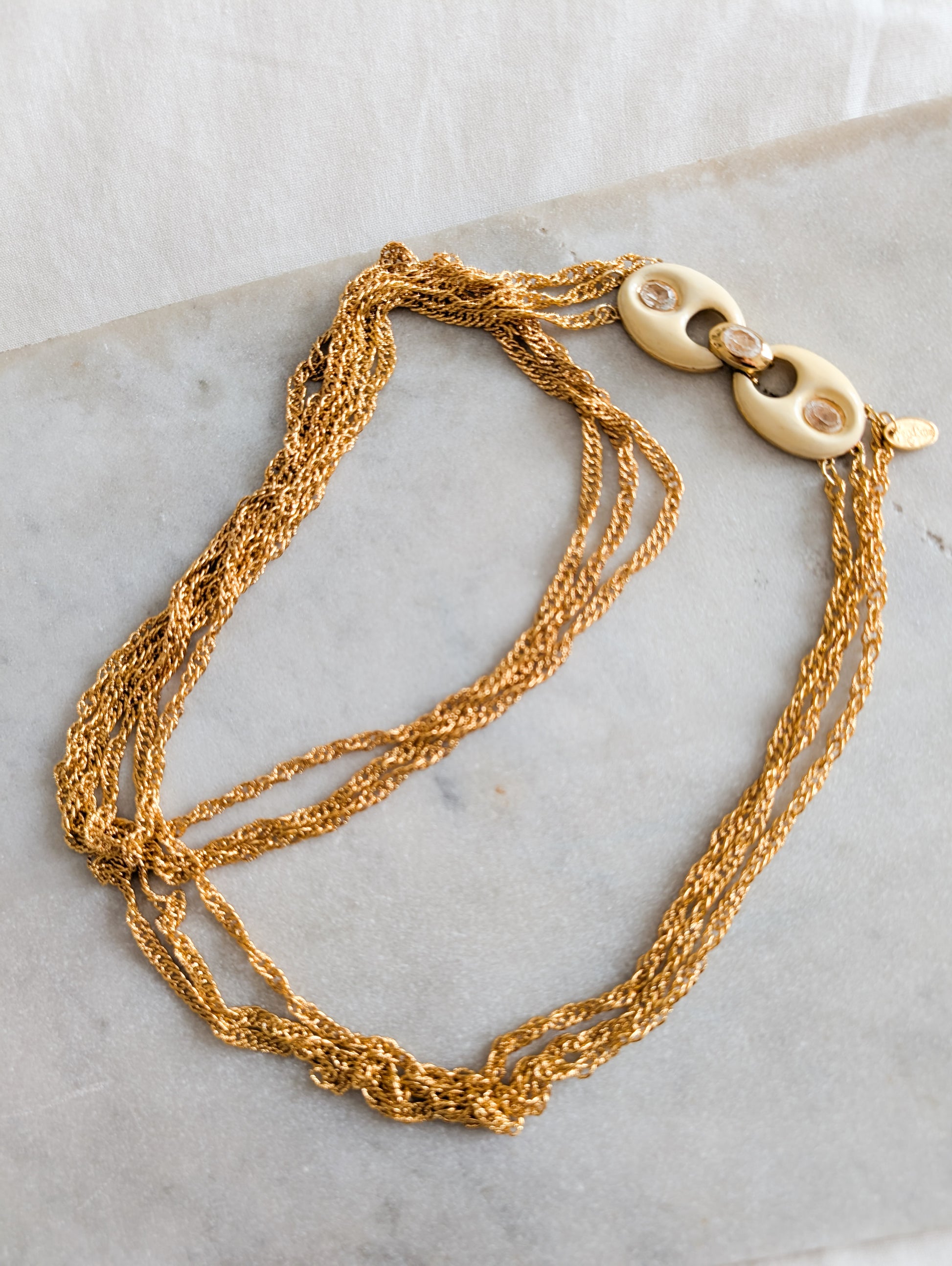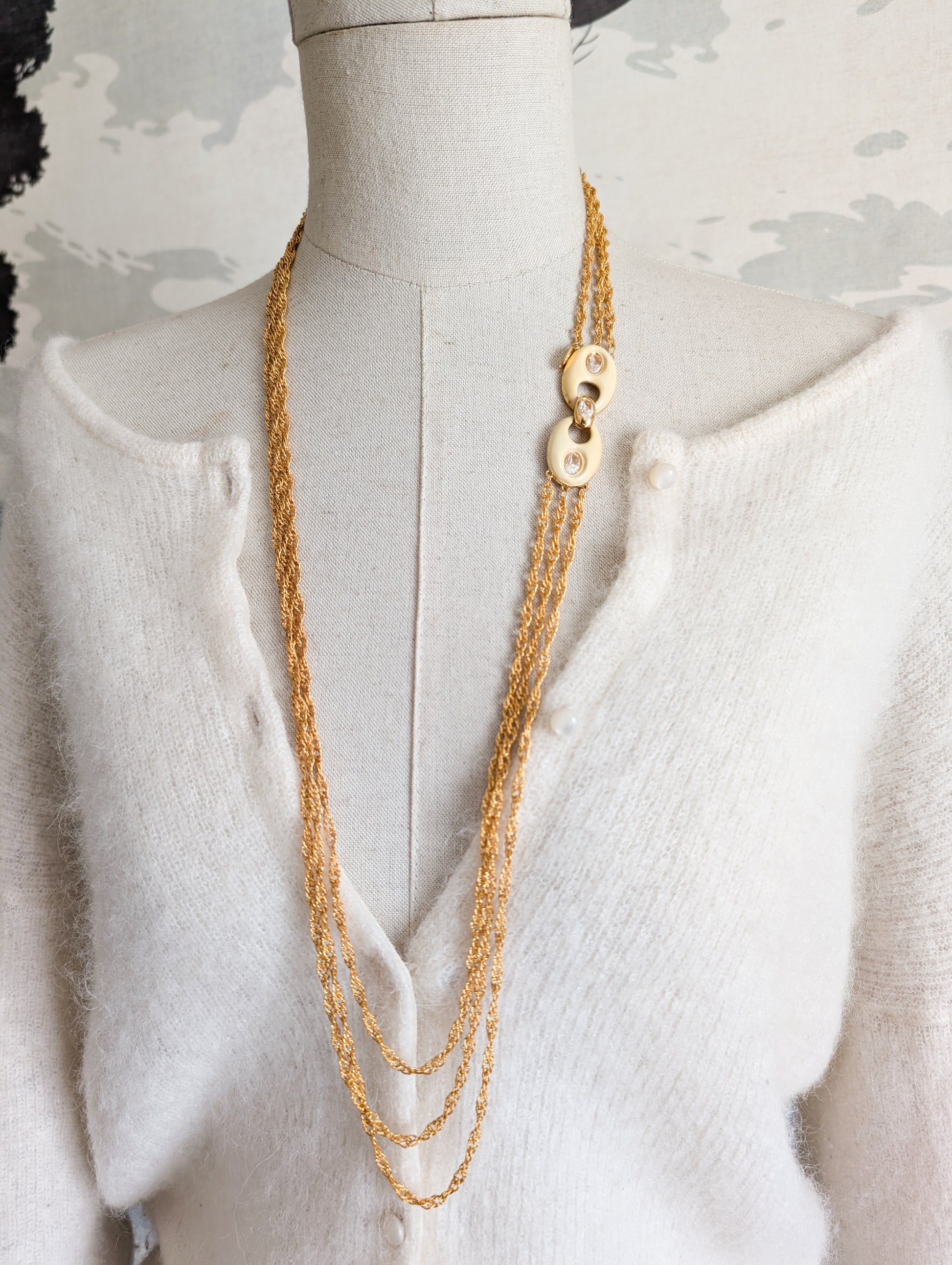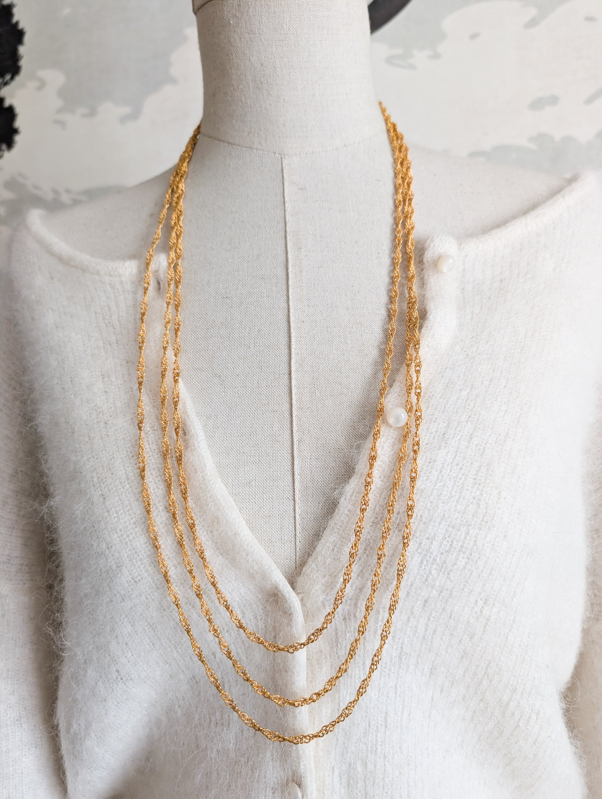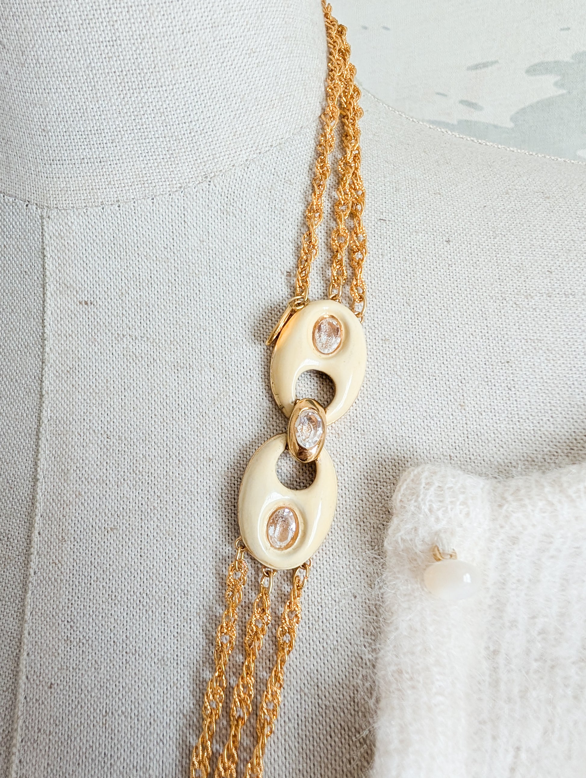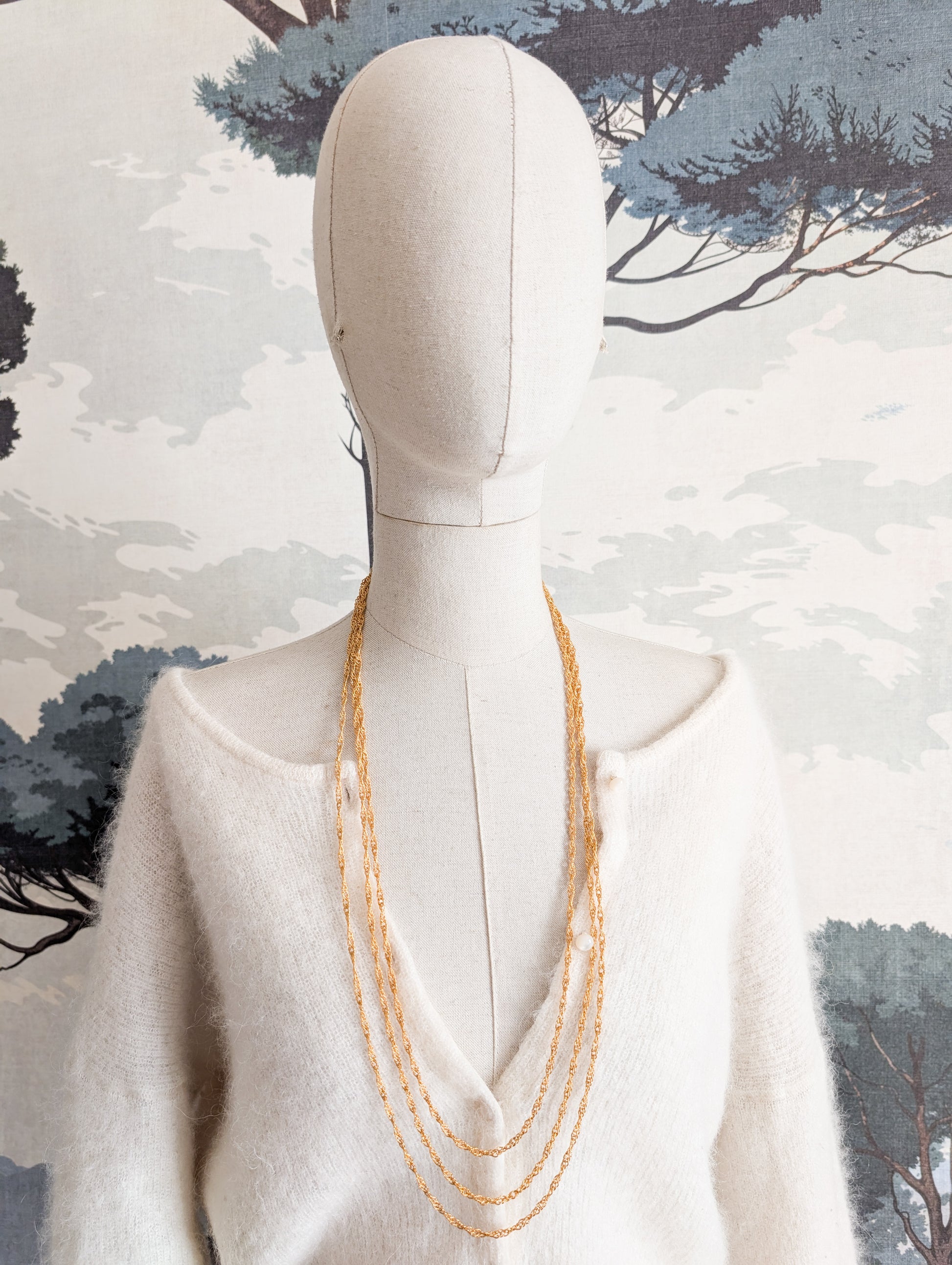 Le collier présente 3 rangs de belles chaînettes torsadées.
