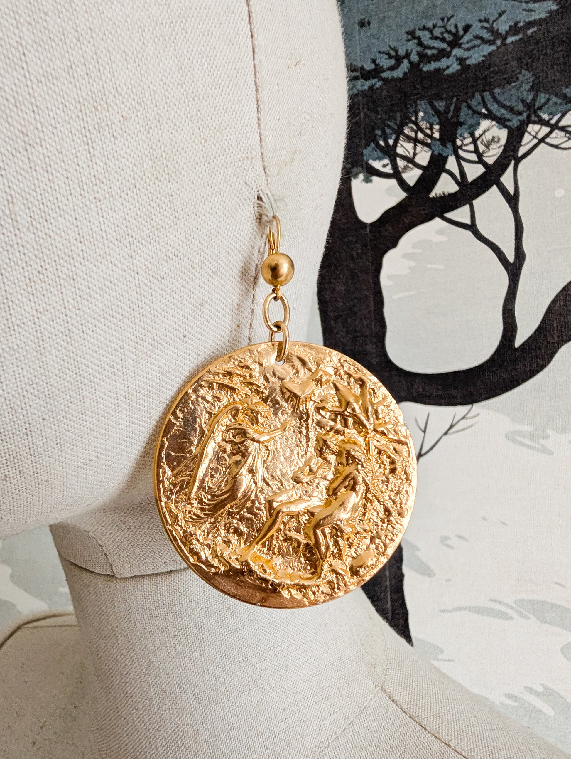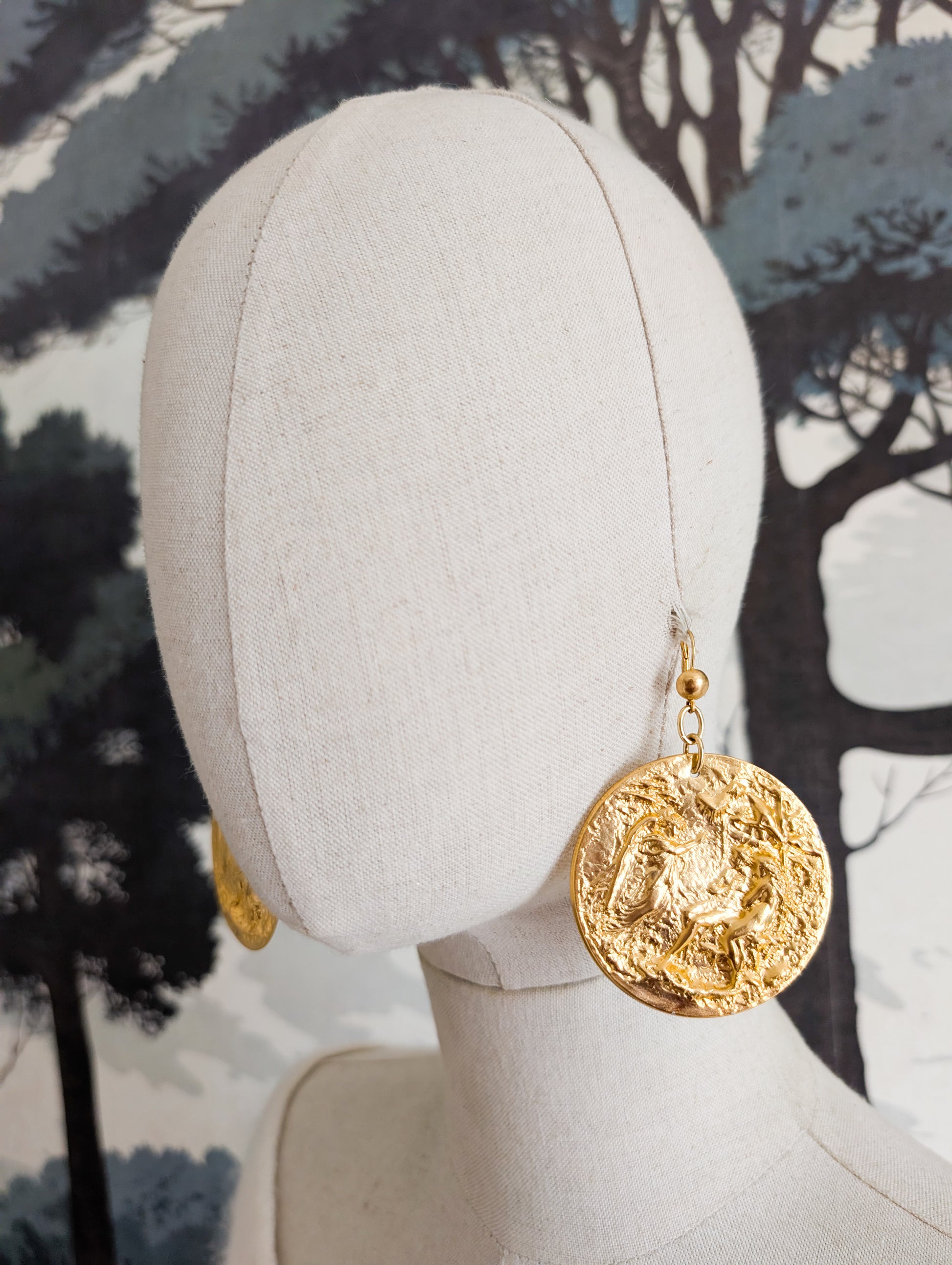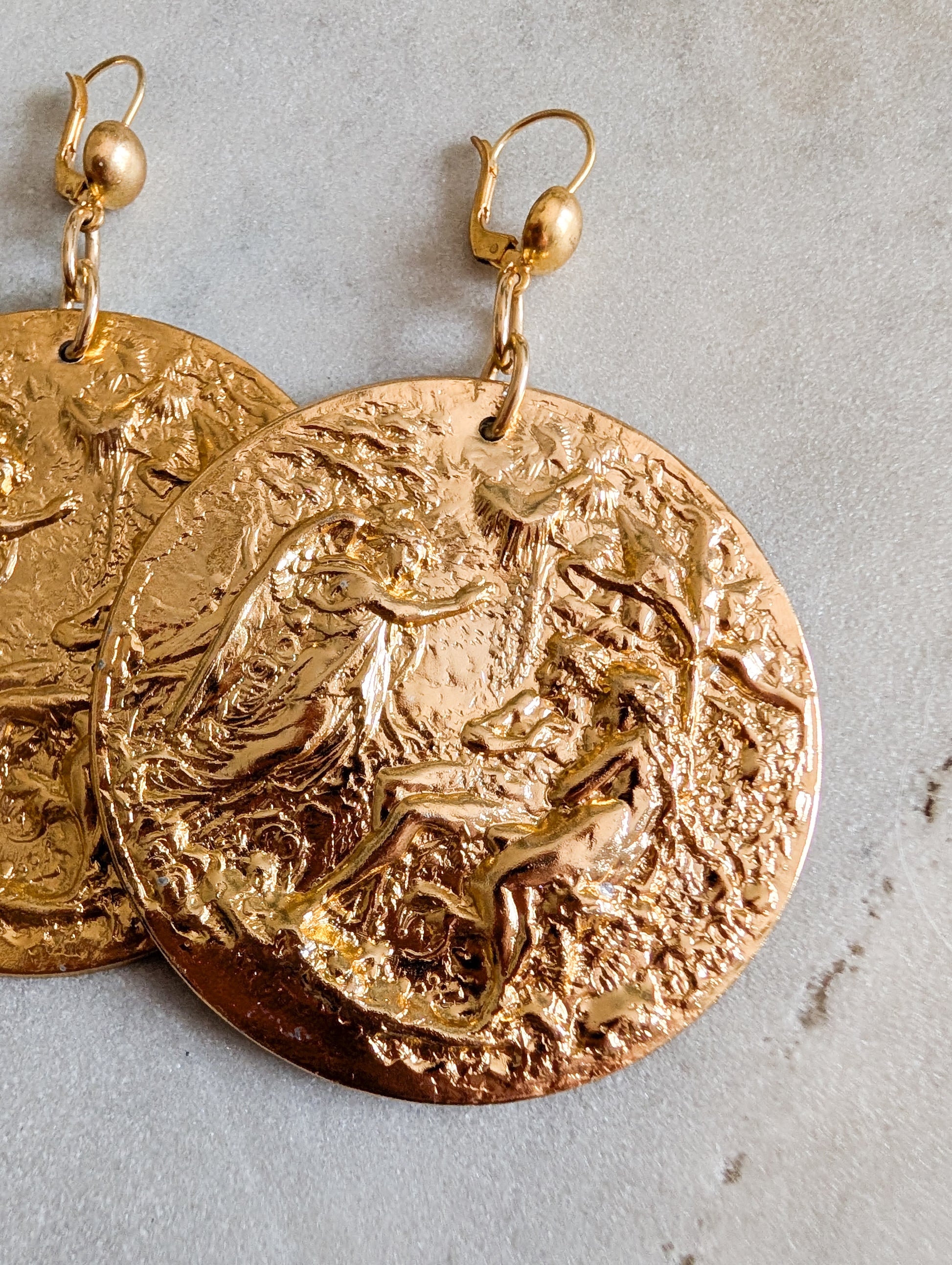 Très grandes boucles d'oreilles datant des années 90. Les boucles sont en métal embossé.